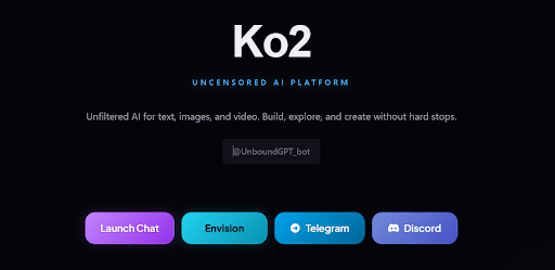 Ko2 is built for users who want total creative freedom with AI — no heavy filters, no topic blocks, and no artificial limits. Instead of forcing you into one model or one style, Ko2 lets you switch between the world’s most powerful AI engines and use them without corporate restrictions. Whether you’re creating text, images, or video, Ko2 gives you full control.